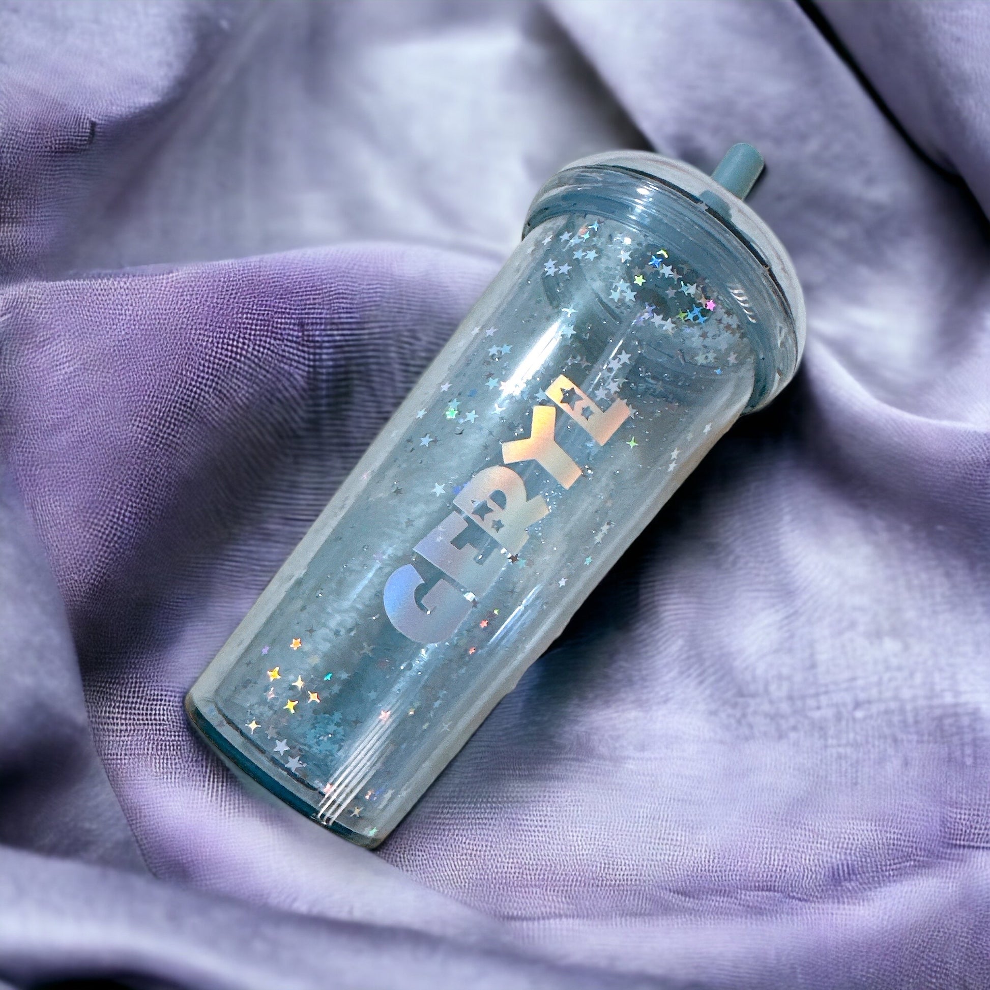 Sparkling double wall straw tumbler with lotsa mini stars that lets you standout from the crowd!